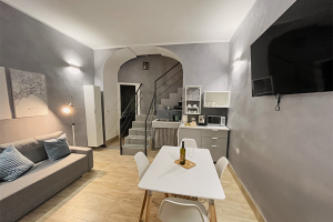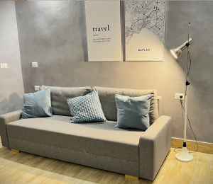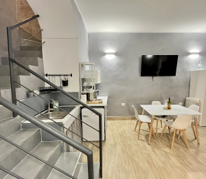 Nel Vico è un appartamento su due livelli con entrata diretta dalla strada in uno dei vicoli più suggestivi di Forcella. Un dormitorio grande, elegante e raffinato al piano di sopra, con un comodissimo letto di 160×200 e un divani letto click clack, tipo futon. Al piano di sotto si trova il bagno, l’angolo snack con frigo, microonde, tostapane e bollitore. Smart TV, Wifi ed un secondo divano letto click clack per due persone.