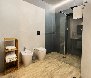 Nel bagno, spaziosissimo, troverai una ampia doccia. A tua disposizione ci sono le saponette ed il gelshampoo della linea Saudade ed un asciugacapelli.